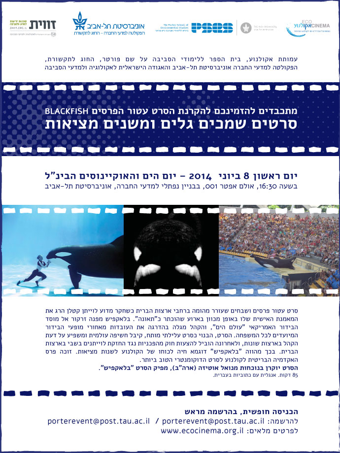 להקרנה מיוחד של סרט תיעודי בנושא סביבה Blackfish,
